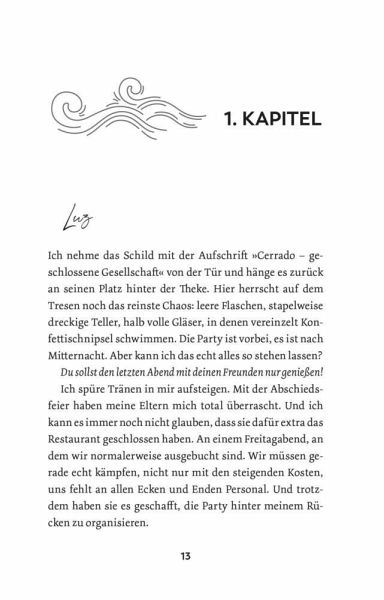 Eigentlich wollte Luz mit ihrem Bruder nach dem Abi einen Roadtrip durch Europa machen. Doch als dieser Traum unverhofft platzt, fährt sie stattdessen nach Cadilla, einen malerischen Küstenort in Spanien, um dort über den Sommer als Rettungsschwimmerin zu arbeiten. Fremde Leute, eine neue Umgebung - eigentlich nicht so ihr Ding. Doch als Luz gleich an ihrem ersten Tag Rico begegnet, hebt sich ihre Stimmung sofort. Denn komischerweise fällt es Luz bei dem selbstgefälligen Surfer überhaupt nicht schwer, einfach draufloszureden. Ganz im Gegenteil, zwischen den beiden fliegen von Beginn an immer wieder die Fetzen - und die Funken.