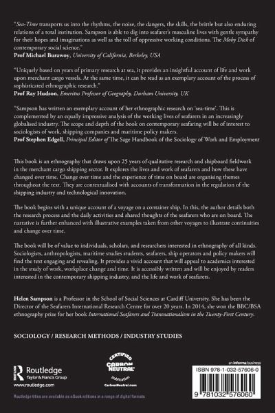 This book is an ethnography that draws upon 25 years of qualitative research and shipboard fieldwork in the merchant cargo shipping sector. It explores the lives and work of seafarers and how these have changed over time. Change over time and the experience of time on board are organising themes throughout the text. They are contextualised with accounts of transformation in the regulation of the shipping industry and technological innovation.