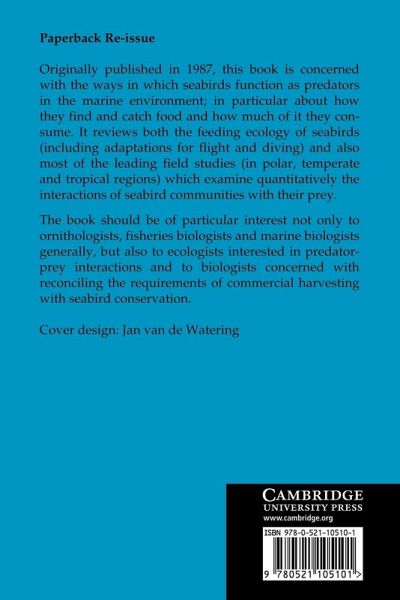Originally published in 1986, this book is concerned with the ways in which seabirds function as predators in the marine environment; in particular about how they find and catch food and how much of it they consume. It reviews both the feeding ecology of seabirds (including adaptations for flight and diving) and also most of the leading field studies (in polar, temperate and tropical regions) that have quantitatively examined the interactions of seabird communities with their prey.