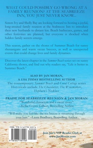 What could possibly go wrong at a family reunion? At the Seabreeze Inn, you just never know... Sisters Ivy and Shelly Bay are looking forward to hosting a joyful, long-awaited family reunion at the Seabreeze Inn to introduce their new husbands to distant kin. Beach barbecues, games, and other festivities are planned, but everyone is shocked when hidden family secrets emerge. This season, gather on the shores of Summer Beach for sunny shenanigans and warm ocean breezes, as well as unexpected events that could change lives and family dynamics. Discover the latest chapter in the Summer Beach series set on sunny California shores, and find out why readers say, "Life is better in Summer Beach."