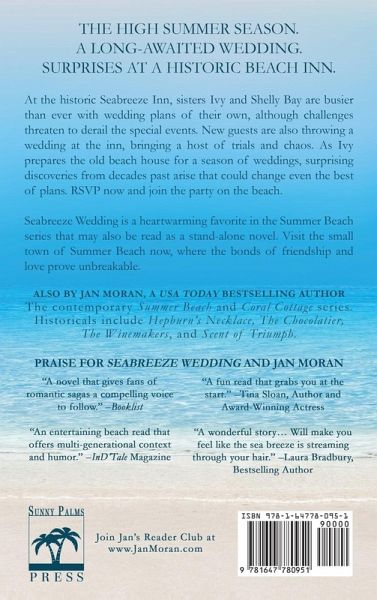 The high summer season. A long-awaited wedding. Surprises at a historic beach inn. *From a USA Today Bestselling Author* At the historic Seabreeze Inn, a summer beach wedding has sisters Ivy and Shelly Bay busier than ever with wedding plans. New guests arrive, bringing with them fresh challenges and chaos. As Ivy prepares the old beach house for a family wedding, surprising discoveries from decades past arise. RSVP now and join the party. Read Seabreeze Wedding as a standalone or as part of the beloved Summer Beach series. The heartwarming story is set on the sunny Southern California coastline. Visit the small town of Summer Beach now, where the bonds of friendship and love prove unbreakable. Available in ebook, paperback, hardcover, and audiobook. REVIEWS FOR THE SUMMER BEACH SERIES More than 5,000 5-star reviews on Goodreads! "A novel that gives fans of romantic sagas a compelling voice to follow." Booklist "SEABREEZE INN is truly an enjoyable, lovely read that will lift your spirits. If you enjoy a light, breezy read, old houses, and characters with secrets, you will want to add this book to your TBR. Art lovers will also enjoy this book that slips in a little romance." - Silver's Reviews "An entertaining beach read that offers multi-generational context and humor." - InD'Tale Magazine "A fun read that grabs you at the start." -Tina Sloan, Author and Award-Winning Actress "A wonderful story that is great at any time of the year. Will make you feel like the sea breeze is streaming through your hair." - Laura Bradbury, Bestselling Author, My Grape Year "I love stories where the protagonist connects with an old love! Especially if the story is set at the beach. Wonderful characters and a sweet story." - Kellie Coates Gilbert, Bestselling Author, The Pacific Bay Series Summer Beach Series Seabreeze Inn Seabreeze Summer Seabreeze Sunset Seabreeze Christmas Seabreeze Wedding Seabreeze Book Club Coral Cottage Coral Cafe Coral Holiday To be announced...