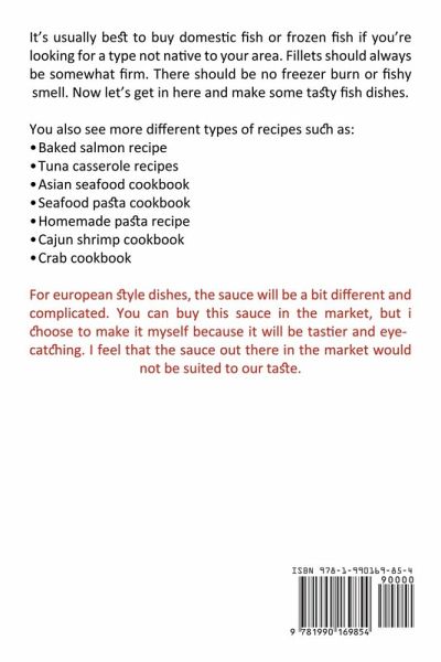 It's usually best to buy domestic fish or frozen fish if you're looking for a type not native to your area. Fillets should always be somewhat firm. There should be no freezer burn or fishy smell. Now let's get in here and make some tasty fish dishes. You also see more different types of recipes such as: ¿ Baked salmon recipe ¿ Tuna casserole recipes ¿ Asian seafood cookbook ¿ Seafood pasta cookbook ¿ Homemade pasta recipe ¿ Cajun shrimp cookbook ¿ Crab cookbook For european style dishes, the sauce will be a bit different and complicated. You can buy this sauce in the market, but i choose to make it myself because it will be tastier and eye-catching. I feel that the sauce out there in the market would not be suited to our taste.