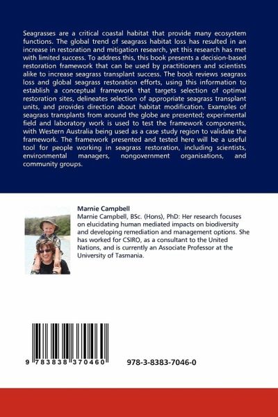 Seagrasses are a critical coastal habitat that provide many ecosystem functions. The global trend of seagrass habitat loss has resulted in an increase in restoration and mitigation research, yet this research has met with limited success. To address this, this book presents a decision-based restoration framework that can be used by practitioners and scientists alike to increase seagrass transplant success. The book reviews seagrass loss and global seagrass restoration efforts, using this information to establish a conceptual framework that targets selection of optimal restoration sites, delineates selection of appropriate seagrass transplant units, and provides direction about habitat modification. Examples of seagrass transplants from around the globe are presented; experimental field and laboratory work is used to test the framework components, with Western Australia being used as a case study region to validate the framework. The framework presented and tested here will be a useful tool for people working in seagrass restoration, including scientists, environmental managers, nongovernment organisations, and community groups.