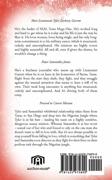 Meet Lieutenant Tyler Zachary Garrett. He's the leader of SEAL Team Mega One. He's worked hard to get where he is and his life is just the way he likes it. All and all, even if given the chance, he wouldn't change a thing. That is, until he meets Samantha James. Right from the start they clash, they fight and they struggle against the mutual attraction that seems to have a will of its own. SEALed with a Kiss, takes Tyler and Samantha's whirlwind relationship from Texas, to San Diego and deep into the Nigerian Jungle where Tyler is at his best - leading his team on a highly sensitive, dangerous rescue mission. Whereas, Samantha is at her worst - scared out of her wits and forced to rely on the one man she doesn't want to fall in love with.