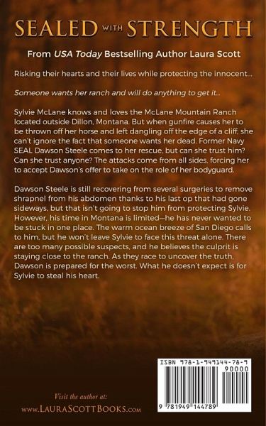 From USA Today Bestselling Author Laura Scott Risking their hearts and their lives while protecting the innocent . . . Someone wants her ranch and will do anything to get it... Sylvie McLane knows and loves the McLane Mountain Ranch located outside Dillon, Montana. But when gunfire causes her to be thrown off her horse and left dangling off the edge of a cliff, she can't ignore the fact that someone wants her dead. Former Navy SEAL Dawson Steele comes to her rescue, but can she trust him? Can she trust anyone? The attacks come from all sides, forcing her to accept Dawson's offer to take on the role of her bodyguard. Dawson Steele is still recovering from several surgeries to remove shrapnel from his abdomen thanks to his last op that had gone sideways, but that isn't going to stop him from protecting Sylvie. However, his time in Montana is limited-he has never wanted to be stuck in one place. The warm ocean breeze of San Diego calls to him, but he won't leave Sylvie to face this threat alone. There are too many possible suspects, and he believes the culprit is staying close to the ranch. As they race to uncover the truth, Dawson is prepared for the worst. What he doesn't expect is for Sylvie to steal his heart.