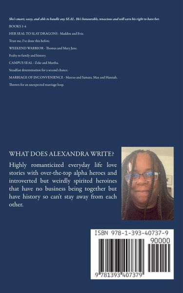 She's smart, sassy, and able to handle any SEAL. He's honourable, tenacious and will earn his right to have her. BOOKS 1-4 HER SEAL TO SLAY DRAGONS - Maddox and Evie. Trust me, I've done this before. WEEKEND WARRIOR - Thomas and Mary Jane. Fealty to family and history. CAMPUS SEAL - Zeke and Martha. Steadfast determination for a second chance. MARRIAGE OF INCONVENIENCE - Marcus and Samara. Max and Hannah. Thrown for an unexpected marriage loop.