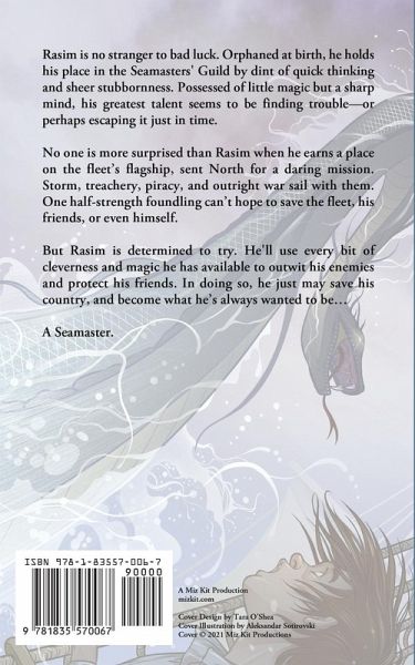 Rasim is no stranger to bad luck. Orphaned at birth, he holds his place in the Seamasters' Guild by dint of quick thinking and sheer stubbornness. Possessed of little magic but a sharp mind, his greatest talent seems to be finding trouble-or perhaps escaping it just in time. No one is more surprised than Rasim when he earns a place on the fleet's flagship, sent North for a daring mission. Storm, treachery, piracy, and outright war sail with them. One half-strength foundling can't hope to save the fleet, his friends, or even himself. But Rasim is determined to try. He'll use every bit of cleverness and magic he has available to outwit his enemies and protect his friends. In doing so, he just may save his country, and become what he's always wanted to be... ...a Seamaster.