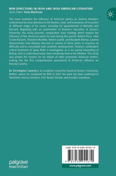 This book examines the influence of American poetry on Seamus Heaney's achievement by close attention to the themes, style, and resonances of his poetry at different stages of his career, including his appointments in Berkeley and Harvard. Beginning with an examination of Heaney's education at Queen's University, this study presents comparative close readings which explore the influence of five American poets he read during this period: Robert Frost, John Crowe Ransom, Theodore Roethke, Robert Lowell, and Elizabeth Bishop. Laverty demonstrates how Heaney returned to several of these poets in response to difficulty and to consolidate later aesthetic developments. Heaney's ambivalent critical treatment of Sylvia Plath is investigated, as is his partial misreading of Bishop, who is understood today more sensitively than in her lifetime. This study also probes the reasons for his elision of other prominent American writers, making this the first comprehensive assessment of American influence on Heaney's poetry.