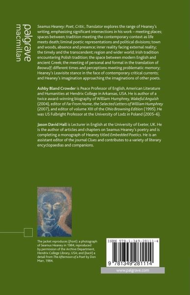 Acknowledgements Notes on Contributors Introduction; A.B.Crowder & J.D.Hall Seamus Heaney and the Modern Irish Elegy; S.Regan Poems without Frontiers: Poetic Reception and Political Possibility in the Work of Seamus Heaney; R.Rankin Russell "A Meaning Made of Trees": The Unwriting of a Symbol; C.McKenna Reading Heaney Reading; S.Burris Heaney and the Functions of Prose; M.Baron The "Upward Waft": The Influence of Frost and Eliot on Heaney's Later Phase; D.Ross The Way via Warsaw: Seamus Heaney and Post-War Polish Poets; J.Jarniewicz The Cure at Troy : Sophocles or Heaney?; P.Turner Putting a Bawn into Beowulf ; A.Finlay Remember Everything': Things Past in Station Island ; J.Brooker "The cure by poetry that cannot be coerced': Text, Canon and Context in Electric Light ; R.Moi Literary Allusions, Appropriations and Assimilations; B.Hardy Index