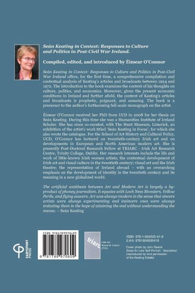 Seán Keating in Context: Responses to Culture and Politics in Post-Civil War Ireland offers, for the first time, a comprehensive compilation and contextual analysis of Keating's articles and broadcasts between 1924 and1972. The introduction to the book examines the context of his thoughts on culture, politics, and economics. Moreover, given the present economic conditions in Ireland and further afield, the content of Keating's articles and broadcasts is prophetic, poignant, and amusing. The book is a precursor to the author's forthcoming full-scale monograph on the artist.
