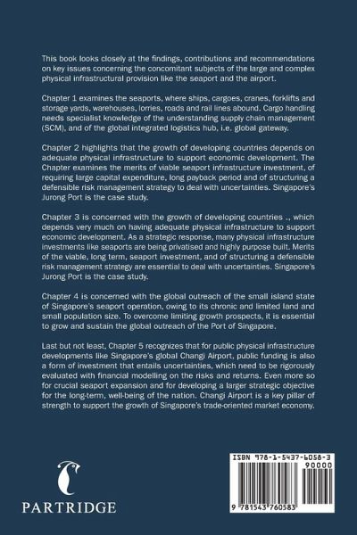 This book looks closely at the findings, contributions and recommendations on key issues concerning the concomitant subjects of the large and complex physical infrastructural provision like the seaport and the airport. Chapter 1 examines the seaports, where ships, cargoes, cranes, forklifts and storage yards, warehouses, lorries, roads and rail lines abound. Cargo handling needs specialist knowledge of the understanding supply chain management (SCM), and of the global integrated logistics hub, i.e. global gateway. Chapter 2 highlights that the growth of developing countries depends on adequate physical infrastructure to support economic development. The Chapter examines the merits of viable seaport infrastructure investment, of requiring large capital expenditure, long payback period and of structuring a defensible risk management strategy to deal with uncertainties. Singapore's Jurong Port is the case study. Chapter 3 is concerned with the growth of developing countries ., which depends very much on having adequate physical infrastructure to support economic development. As a strategic response, many physical infrastructure investments like seaports are being privatised and highly purpose built. Merits of the viable, long term, seaport investment, and of structuring a defensible risk management strategy are essential to deal with uncertainties. Singapore's Jurong Port is the case study. Chapter 4 is concerned with the global outreach of the small island state of Singapore's seaport operation, owing to its chronic and limited land and small population size. To overcome limiting growth prospects, it is essential to grow and sustain the global outreach of the Port of Singapore. Last but not least, Chapter 5 recognizes that for public physical infrastructure developments like Singapore's global Changi Airport, public funding is also a form of investment that entails uncertainties, which need to be rigorously evaluated with financial modelling on the risks and returns. Even more so for crucial seaport expansion and for developing a larger strategic objective for the long-term, well-being of the nation. Changi Airport is a key pillar of strength to support the growth of Singapore's trade-oriented market economy.