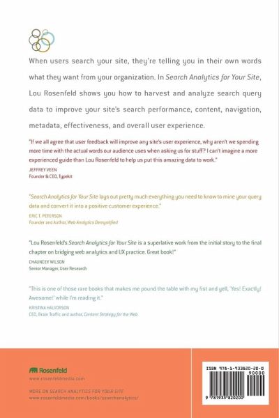 Any organization that has a searchable web site or intranet is sitting on top of hugely valuable and usually under-exploited data: logs that capture what users are searching for, how often each query was searched, and how many results each query retrieved. Search queries are gold: they are real data that show us exactly what users are searching for in their own words. This book shows you how to use search analytics to carry on a conversation with your customers: listen to and understand their needs, and improve your content, navigation and search performance to meet those needs.