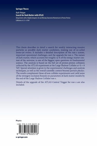Introduction.- Theory and Motivation.- The Standard Model of Particle Physics.- Dark Matter.- Proton-Proton Collisions.- Mono-Jet Events as Dark Matter Signature at Colliders.- Large Hadron Collider.- The ATLAS Experiment.- Operation of the Central Trigger during run-I.- Upgrade of the Central Trigger.- Analysis Strategy.- Data and Simulated Samples.- Physics Objects Definitions.- Event Selection.- Background Estimation.- Results and Interpretation.- Prospects with Future LHC DataConclusion.