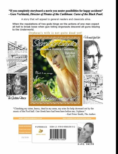 2 in 1 Screenplay and Graphic Novel. Based on the most famous Orphic tale: Search for Eurydice. ~ Synopsis: Orpheus (minstrel of the Argonauts) is distraught upon finding that the mythical healing powers of the Golden Fleece are not enough to resurrect his dead wife. In mourning he plays his most sorrowful song drawing tears from the very eyes of those who rule over the Dead. King and Queen of the Underworld give him one chance to rescue her, but he must stick to one certain rule: To not look back until he has reached the surface. "If you break this rule she will be lost forever." Reincarnated in the present for the entertainment of the gods; Orpheus becomes part of a wager of mythic proportions. Can he rescue his wife by discovering his true identity or will the Valley of Acherusia, (the only known way for a living being to reach the Underworld) still remain a guarded secret. Orpheus holds the belief that she isn't quite dead yet.