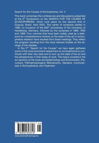 This volume is a compilation of the presentations and discus sions, arranged in a systematic manner, of the fifth symposium on the Search for the Causes of Schizophrenia, held in Guarujal Brazil in April, 2003. The meetings look back on a great tradi tion. The first symposium, held in 1986 on the occasion of the th 600 anniversary of the University of Heidelberg, was our first effort to assemble successful schizophrenia researchers to pre sent and discuss research results in a spirit overcoming meth odological boundaries and disciplines. The result was one of the most interesting and exciting meetings and a proceedings volume published in 1987. Like the present volume it contained the presentations and discussions of the meeting conveying an excellent picture of what was going on in schizophrenia re search at that time and outlining the main future perspectives. Four further symposia followed at an interval of 2 to 3 years each. They were guided by the same principle and characterised by illustrious contributors and a highly stimulating atmosphere. The proceedings volumes, all entitled "Search for the causes of schizophrenia" and looking alike, were published by the same publisher. They reflect the considerable progress made in schi zophrenia research since 1986 and have been widely used as a source for information on the most promising research lines and results and as a reference for comprehensive reviews.