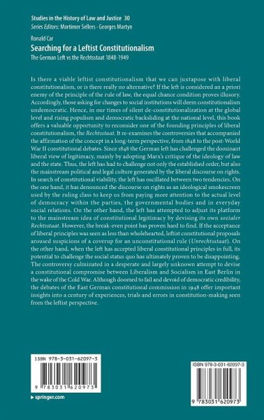 Is there a viable leftist constitutionalism that we can juxtapose with liberal constitutionalism, or is there really no alternative? If the left is considered an a priori enemy of the principle of the rule of law, the equal chance condition proves illusory. Accordingly, those asking for changes to social institutions will deem constitutionalism undemocratic. Hence, in our times of silent de-constitutionalization at the global level and rising populism and democratic backsliding at the national level, this book offers a valuable opportunity to reconsider one of the founding principles of liberal constitutionalism, the Rechtsstaat. It re-examines the controversies that accompanied the affirmation of the concept in a long-term perspective, from 1848 to the post-World War II constitutional debates. Since 1848 the German left has challenged the dominant liberal view of legitimacy, mainly by adopting Marx's critique of the ideology of law and the state. Thus, the left has had to challenge not only the established order, but also the mainstream political and legal culture generated by the liberal discourse on rights. In search of constitutional viability, the left has oscillated between two tendencies. On the one hand, it has denounced the discourse on rights as an ideological smokescreen used by the ruling class to keep us from paying more attention to the actual level of democracy within the parties, the governmental bodies and in everyday social relations. On the other hand, the left has attempted to adjust its platform to the mainstream idea of constitutional legitimacy by devising its own sozialer Rechtsstaat. However, the break-even point has proven hard to find. If the acceptance of liberal principles was seen as less than wholehearted, leftist constitutional proposals aroused suspicions of a coverup for an unconstitutional rule (Unrechtsstaat). On the other hand, when the left has accepted liberal constitutional principles in full, its potential to challenge the social status quo has ultimately proven to be disappointing. The controversy culminated in a desperate and largely unknown attempt to devise a constitutional compromise between Liberalism and Socialism in East Berlin in the wake of the Cold War. Although doomed to fail and devoid of democratic credibility, the debates of the East German constitutional commission in 1948 offer important insights into a century of experiences, trials and errors in constitution-making seen from the leftist perspective.