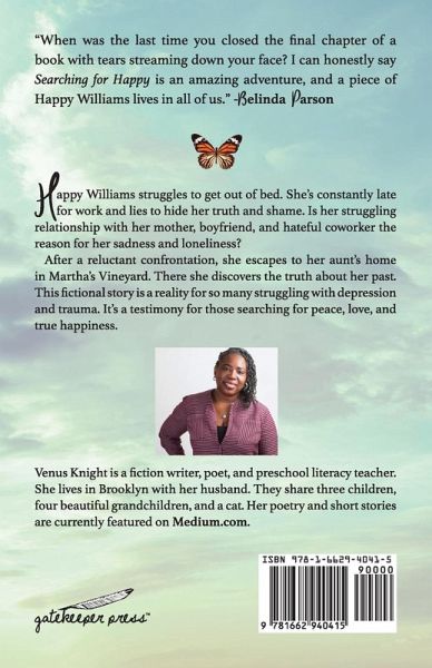 Happy Williams struggles to get out of bed. She's constantly late for work and lies to hide her truth and shame. Are her toxic relationships with her mother, boyfriend, and a hateful coworker the reason for her sadness and loneliness? After a reluctant confrontation, she escapes to her extended aunt's home in Martha's Vineyard. There she discovers the truth about her past. This fictional story is a reality for so many of us struggling with depression and trauma. It's a testimony for those searching for peace, love, and true happiness.