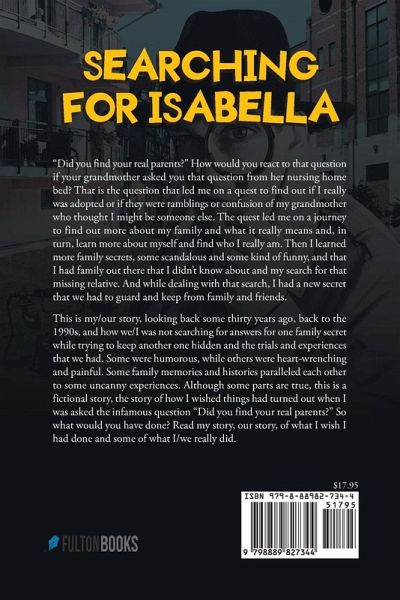 "Did you find your real parents?" How would you react to that question if your grandmother asked you that question from her nursing home bed? That is the question that led me on a quest to find out if I really was adopted or if they were ramblings or confusion of my grandmother who thought I might be someone else. The quest led me on a journey to find out more about my family and what it really means and, in turn, learn more about myself and find who I really am. Then I learned more family secrets, some scandalous and some kind of funny, and that I had family out there that I didn't know about and my search for that missing relative. And while dealing with that search, I had a new secret that we had to guard and keep from family and friends. This is my/our story, looking back some thirty years ago, back to the 1990s, and how we/I was not searching for answers for one family secret while trying to keep another one hidden and the trials and experiences that we had. Some were humorous, while others were heart-wrenching and painful. Some family memories and histories paralleled each other to some uncanny experiences. Although some parts are true, this is a fictional story, the story of how I wished things had turned out when I was asked the infamous question "Did you find your real parents?" So what would you have done? Read my story, our story, of what I wish I had done and some of what I/we really did.
