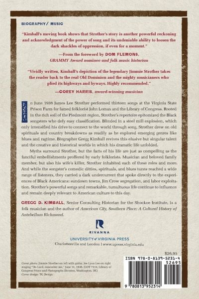 In June 1936 James Lee Strother performed thirteen songs at the Virginia State Prison Farm for famed folklorist John Lomax and the Library of Congress. Rooted in the rich soil of the Piedmont region, Strother's repertoire epitomized the Black songsters who defy easy classification. Blinded in a steel mill explosion, which only intensified his drive to connect to the world through song, Strother drew on old spirituals and country breakdowns as readily as he explored emerging genres like blues and ragtime. Biographer Gregg Kimball revives this elusive but singular talent and the creative and historical worlds in which his dramatic life unfolded. Myths surround Strother but, as Kimball reveals, the facts of Strother's life are just as compelling as the fanciful embellishments proffered by early folklorists. Musician, murderer, and beloved family member-Strother somehow played each of these roles, and more. And while the songster's comedic ditties, spirituals, and blues tunes reached a wide range of listeners (and were later covered by musicians like Pete Seeger and Jefferson Airplane), they carried a dark undercurrent that spoke directly to the experiences of Black Americans: sundown towns, Jim Crow segregation, and labor exploitation. As Kimball shows, Strother's powerful songs and remarkable, tumultuous life continue to influence and remain deeply relevant to American culture to this day.