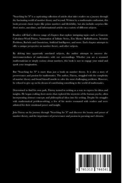 "Searching for N" is a captivating collection of articles that takes readers on a journey through the fascinating world of number theory and beyond. Written by a mathematics enthusiast, this book presents classic topics like prime numbers and divisibility, but also includes surprises like short stories, anecdotes, and informational articles on a variety of different subjects. Readers will find a diverse range of chapters that explore intriguing topics such as Concrete Calculator-Word Primes, Summation of Infinite Series, Zen Master Bodhidharma, Iteration Problems, Barbelo and Gnosticism, Artificial Intelligence, and more. Each chapter attempts to offer a unique perspective on number theory, and other subjects. By delving into apparently unrelated subjects, the author attempts to uncover the interconnectedness of mathematics with our surroundings. Whether you are a seasoned mathematician or simply curious about numbers, this book is sure to engage your mind and spark your imagination. But "Searching for N" is more than just a book on number theory. It is also a story of perseverance and passion for mathematics. The author, Fitzroy, struggled with the complexity of number theory and found himself unable to solve the most challenging problems. However, he refused to give up on his dream of contributing something to the world of mathematics. Determined to find his own path, Fitzroy turned to writing as a way to express his ideas and insights. He began crafting short stories that explored the mysteries of the human psyche, often incorporating abstract concepts and philosophical ideas into his writing. Despite his struggles with mathematical problem-solving, a few of his stories resonated with readers and were admired for their emotional power and insight. Join Fitzroy on his journey through "Searching for N" and discover the beauty and power of number theory, and the importance of perseverance and passion in pursuing one's dreams.
