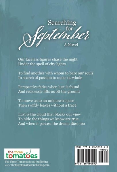 Reality and fantasy are entwined in this gripping story of one woman's journey to find inner strength in a psychologically destructive relationship. September (Seppie) Webb, a divorced, middle-aged New Yorker, had always viewed marriage and romance idealistically. Her pursuit to meet a virtuous and charismatic man who can ignite the flame inside of her is a challenge, at best. Hungry for passion after leaving a lifeless marriage, Seppie takes a plunge into the sea of single men, and the culture of midlife dating has her frustrated and disillusioned. Unexpectedly, she meets the prominent widowed attorney, Teddy Zezza and is swept off her feet by his charming persona. A whirlwind romance unleashes her sexual prowess and encourages her to take a leap of faith. Lured by his charisma, she neglects countless red flags. After a few months of dating, Seppie has fallen hopelessly in love and accepts Teddy's invitation to move into his home with his young daughter, Lily whom she adores. In an effort to remain in a romantic relationship, she stays tethered to an unstable man and finds ways to justify his actions. Searching for September is a must read for any woman who has ever loved deeply and passionately, abandoned her soul to another, given of herself unselfishly, and questioned every decision during her voyage.