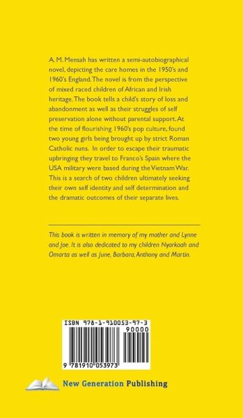 A. M. Mensah has written a semi-autobiographical novel, depicting the care homes in the 1950's and 1960's England. The novel is from the perspective of mixed raced children of African and Irish heritage. The book tells a child's story of loss and abandonment as well as their struggles of self preservation alone without parental support. At the time of flourishing 1960's pop culture, found two young girls being brought up by strict Roman Catholic nuns. In order to escape their traumatic upbringing they travel to Franco's Spain where the USA military were based during the Vietnam War. This is a search of two children ultimately seeking their own self identity and self determination and the dramatic outcomes of their separate lives.