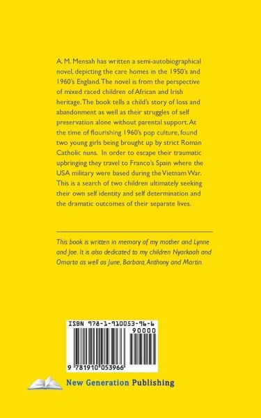 A. M. Mensah has written a semi-autobiographical novel, depicting the care homes in the 1950's and 1960's England. The novel is from the perspective of mixed raced children of African and Irish heritage. The book tells a child's story of loss and abandonment as well as their struggles of self preservation alone without parental support. At the time of flourishing 1960's pop culture, found two young girls being brought up by strict Roman Catholic nuns. In order to escape their traumatic upbringing they travel to Franco's Spain where the USA military were based during the Vietnam War. This is a search of two children ultimately seeking their own self identity and self determination and the dramatic outcomes of their separate lives.