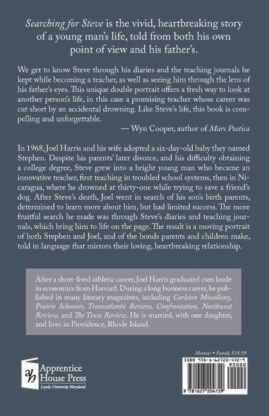 In 1968, Joel Harris and his wife adopted a six-day-old baby they named Stephen. Despite his parents' later divorce, and his difficulty obtaining a college degree, Steve grew into a bright young man who became an innovative teacher, first teaching in troubled school systems, then in Nicaragua, where he drowned at thirty-one while trying to save a friend's dog. After Steve's death, Joel went in search of his son's birth parents, determined to learn more about him, but had limited success. The more fruitful search he made was through Steve's diaries and teaching journals, which bring him to life on the page. The result is a moving portrait of both Stephen and Joel, and of the bonds parents and children make, told in language that mirrors their loving, heartbreaking relationship.