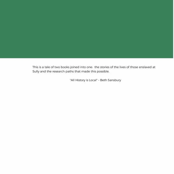 This book is the first attempt to trace the lives of the enslaved at Sully Historic House, Fairfax County, Virginia. The house was completed in 1795 for Richard Bland Lee, Northern Virginia's first Congressman. The book includes the stories of the lives of those enslaved at Sully as well as the research paths that allowed the author to trace them down through history, in a few cases to living descendants.