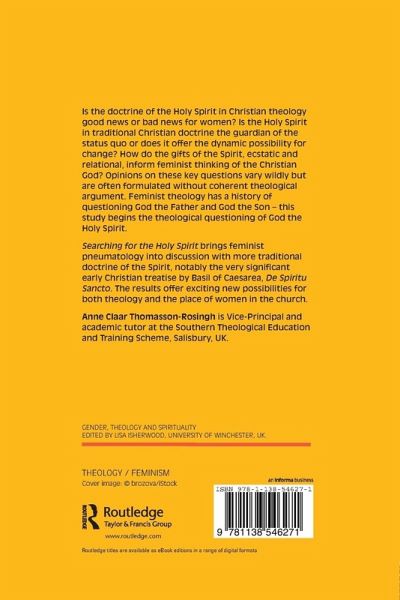 Is the doctrine of the Holy Spirit in Christian theology good news or bad news for women? Is the Holy Spirit in traditional Christian doctrine the guardian of the status quo or does it offer the dynamic possibility for change? How do the gifts of the Spirit, ecstatic and relational, inform feminist thinking of the Christian God. Opinions on these key questions vary wildly but are often formulated without coherent theological argument. Feminist theology has a history of questioning God the Father and God the Son - this study begins the theological questioning of God the Holy Spirit. Searching for the Holy Spirit brings feminist pneumatology into discussion with more traditional doctrine of the Spirit, notably the very significant early Christian treatise by Basil of Caesarea, De Spiritu Sancto. The results offer exciting new possibilities for both theology and the place of women in the church.