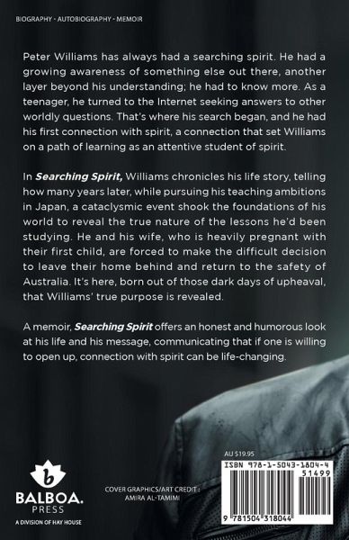 Peter Williams has always had a searching spirit. He had a growing awareness of something else out there, another layer beyond his understanding; he had to know more. As a teenager, he turned to the Internet seeking answers to other worldly questions. That's where his search began, and he had his first connection with spirit, a connection that set Williams on a path of learning as an attentive student of spirit. In Searching Spirit, Williams chronicles his life story, telling how many years later, while pursuing his teaching ambitions in Japan, a cataclysmic event shook the foundations of his world to reveal the true nature of the lessons he'd been studying. He and his wife, who is heavily pregnant with their first child, are forced to make the difficult decision to leave their home behind and return to the safety of Australia. It's here, born out of those dark days of upheaval, that Williams' true purpose is revealed. A memoir, Searching Spirit offers an honest and humorous look at his life and his message, communicating that if one is willing to open up, connection with the spirit can be lifechanging.