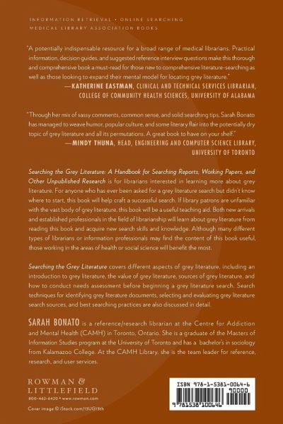 Searching the Grey Literature is for librarians and information professionals interested in learning more about grey literature. This book will aid with crafting a grey lit search successfully, from start to finish. Many types of librarians will find the content of this book useful, particularly those in health or social science.