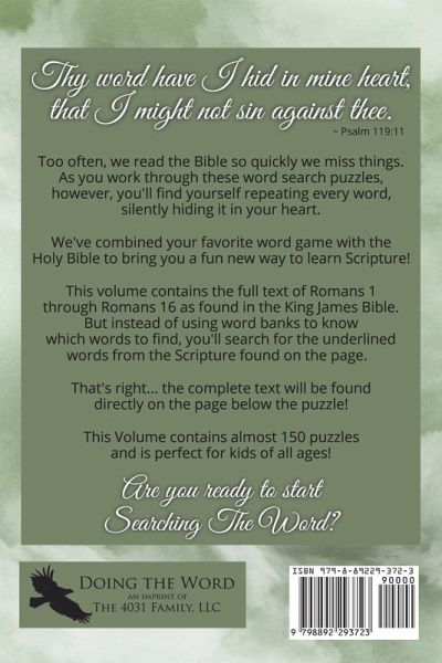 Too often, we read through the Bible so quickly we miss things. We think we know what it says, but God's word is "quick, and powerful, and sharper than any two-edged sword" (Hebrews 4:12). Careful reading often takes us by surprise, revealing layers of profound meaning and insight where we had previously just seen "a story." Dive into the profound wisdom and timeless truth of the book of Romans like never before. Unlock the power of faith, grace, and redemption as you search your way through the heart of Christianity's foundational teachings through the eloquent words of the Apostle Paul. In this captivating book, Paul addresses crucial theological concepts such as justification by faith, the universal sinfulness of humanity, and the transformative power of God's grace. Experience the joy of discovering hidden treasures within the wisdom literature of the Bible and embark on a journey of spiritual enrichment with the Searching Through Romans.