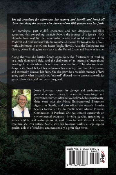 WINNER OF THE 2023 NANCY PEARL AWARD "Cabreza has written a wonderfully engaging memoir. She expertly weaves together moments of heart-pounding adventure and moments of quiet, profound reflection. The result is a compelling story of a life lived with admirable gusto and deep thoughtfulness. I enjoyed every minute of it." (Daniel James Brown, author of Boys in the Boat and Facing the Mountain) Part cultural travelogue, part wildlife encounters and part dangerous, risk-filled adventure, this fascinating memoir follows the journey of a young female biologist during the 1950s-1970s, who was disillusioned with the country and frustrated by the conservative gender and social confines of the 1960s Midwest. At age twelve, inspired by a Life Magazine article, she developed an ambitious global goal list. She set out to accomplish it, eventually leaving the States for two decades of real-world adventures living in the Costa Rican Jungle, Hawaii, Asia, the Philippines, and Guam. She left searching for adventure, but along the way, she also battled family opposition, the frustrations of working in a male-dominated field, the invisible tentacles of the new Vietnam war, and the unconventional challenges of an interracial/intercultural marriage during an era when this was very unconventional. The adventures and dangers she faced helped her rediscover her country, find her life's passion, and eventually discover her faith. The story provides a valuable message for young people, about how going against what is considered "normal" allowed her to discover a world far greater than she could ever have imagined. Joan's forty-year career in biology and environmental protection spans research, academia, consulting, and government service. After her years abroad, she spent twenty-three years with the federal Environmental Protection Agency in Seattle and later edited the Aquatic Invasive Species Newsletter for the Pacific States Marine Fisheries Commission in Portland. She has lectured extensively on environmental programs, invasive species, gardening to attract wildlife, and native plants. A world traveler and Master Gardener emeritus, she lives outside Seattle with her husband Carlos, a large organic garden, a flock of chickens, and occasionally, a great blue heron. Adventure memoir; Women's memoir; Inspirational memoir; Adventure travel; Adventurous life; Spiritual seeking; Seeking God; Biological adventures; Guam adventures; Philippine adventure; Midwestern 1960s; Glen Ellyn Illinois Discussion Questions on this book are available from the Author's website, www.joancabreza.com
