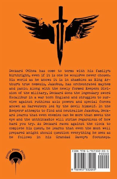 Deckard O'Shea has come to terms with his family's birthright, even if it is one he would've never chosen. His world as he knows it is in shambles as King Arthur's true nemesis, Jakobus, has orchestrated mayhem and panic. Along with the newly formed Keepers Division of the military, Deckard dons the legendary sword Excalibur in a war torn England and struggles to survive against ruthless axis powers and special forces known as Harvesters led by the devil himself. In the Keepers' attempts to find and neutralize Jakobus, Deckard learns that even enemies can be more than meets the eye and the unthinkable will strike regardless of how hard you try. As Deckard races against the clock to complete his quest, he learns that even the most well prepared knight should question everything he sees as he follows in his Grandad Davey's footsteps.