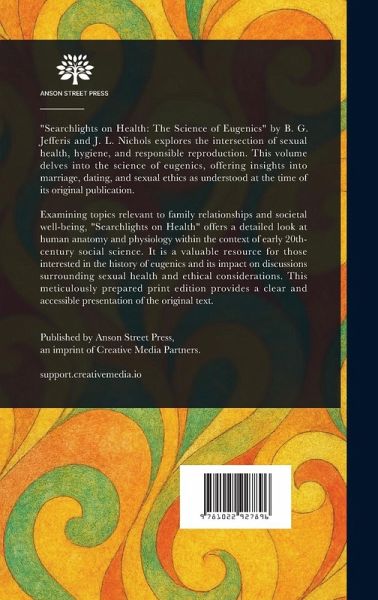 "Searchlights on Health: The Science of Eugenics" by B. G. Jefferis and J. L. Nichols explores the intersection of sexual health, hygiene, and responsible reproduction. This volume delves into the science of eugenics, offering insights into marriage, dating, and sexual ethics as understood at the time of its original publication. Examining topics relevant to family relationships and societal well-being, "Searchlights on Health" offers a detailed look at human anatomy and physiology within the context of early 20th-century social science. It is a valuable resource for those interested in the history of eugenics and its impact on discussions surrounding sexual health and ethical considerations. This meticulously prepared print edition provides a clear and accessible presentation of the original text. This work has been selected by scholars as being culturally important, and is part of the knowledge base of civilization as we know it. This work is in the public domain in the United States of America, and possibly other nations. Within the United States, you may freely copy and distribute this work, as no entity (individual or corporate) has a copyright on the body of the work. Scholars believe, and we concur, that this work is important enough to be preserved, reproduced, and made generally available to the public. We appreciate your support of the preservation process, and thank you for being an important part of keeping this knowledge alive and relevant.