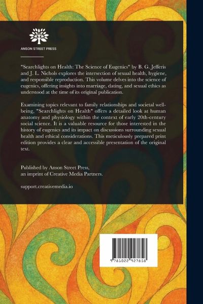 "Searchlights on Health: The Science of Eugenics" by B. G. Jefferis and J. L. Nichols explores the intersection of sexual health, hygiene, and responsible reproduction. This volume delves into the science of eugenics, offering insights into marriage, dating, and sexual ethics as understood at the time of its original publication. Examining topics relevant to family relationships and societal well-being, "Searchlights on Health" offers a detailed look at human anatomy and physiology within the context of early 20th-century social science. It is a valuable resource for those interested in the history of eugenics and its impact on discussions surrounding sexual health and ethical considerations. This meticulously prepared print edition provides a clear and accessible presentation of the original text. This work has been selected by scholars as being culturally important, and is part of the knowledge base of civilization as we know it. This work is in the public domain in the United States of America, and possibly other nations. Within the United States, you may freely copy and distribute this work, as no entity (individual or corporate) has a copyright on the body of the work. Scholars believe, and we concur, that this work is important enough to be preserved, reproduced, and made generally available to the public. We appreciate your support of the preservation process, and thank you for being an important part of keeping this knowledge alive and relevant.