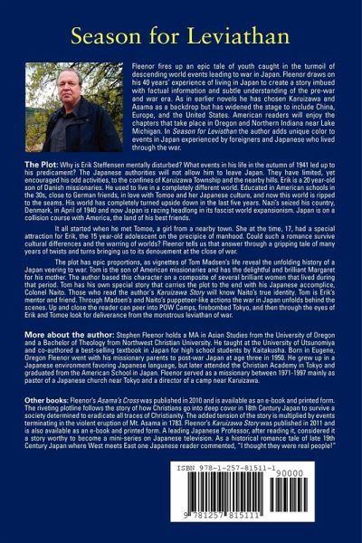 Fleenor fires up an epic tale of youth caught in the turmoil of descending world events leading to war in Japan. Fleenor draws on his 40 years' experience of living in Japan to create a story embued with factual information and subtle understanding of the pre-war and war era. As in earlier novels he has chosen Karuizawa and Asama as a backdrop but has widened the stage to include China, Europe, and the United States. American readers will enjoy the chapters that take place in Oregon and Northern Indiana near Lake Michigan. In ""Season for Leviathan"" the author adds unique color to events in Japan experienced by foreigners and Japanese who lived through the war. The Plot: Why is Erik Steffensen mentally disturbed? What events in his life in the autumn of 1941 led up to his predicament? The Japanese authorities will not allow him to leave Japan. They have limited, yet encouraged his odd activities... Who is the girl?