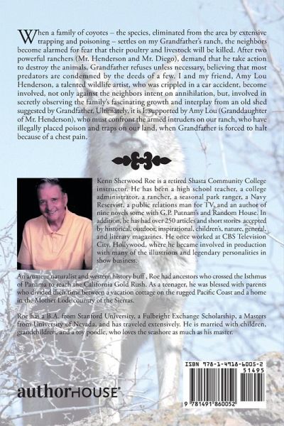 W hen a family of coyotes - the species, eliminated from the area by extensive trapping and poisoning - settles on my Grandfather's ranch, the neighbors become alarmed for fear that their poultry and livestock will be killed. After two powerful ranchers (Mr. Henderson and Mr. Diego), demand that he take action to destroy the animals, Grandfather refuses unless necessary, believing that most predators are condemned by the deeds of a few. I and my friend, Amy Lou Henderson, a talented wildlife artist, who was crippled in a car accident, become involved, not only against the neighbors intent on annihilation, but, involved in secretly observing the family's fascinating growth and interplay from an old shed suggested by Grandfather. Ultimately, it is I, supported by Amy Lou (Granddaughter of Mr. Henderson), who must confront the armed intruders on our ranch, who have illegally placed poison and traps on our land, when Grandfather is forced to halt because of a chest pain.