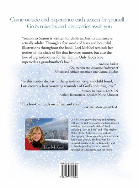 In this extraordinary children's book, Grace embraces each season with anticipation and excitement. Snowflakes, Christmas trees, and the nativity delight her in winter, and fresh showers and the miracle of seeds sprouting in the warm earth inspire her each spring. Warm summer evenings glow with glittering stars and fireflies that decorate the midnight skies, and autumn parades prized vegetables and colorful fruit surprises to be shared with her those around her. Surrounded by God's creation, Grace experiences freedom to mature and value life's most seasoned gifts-faith, love, joy and peace-all of which are priceless and free. Come outside and experience each season for yourself...God's miracles and discoveries await you.
