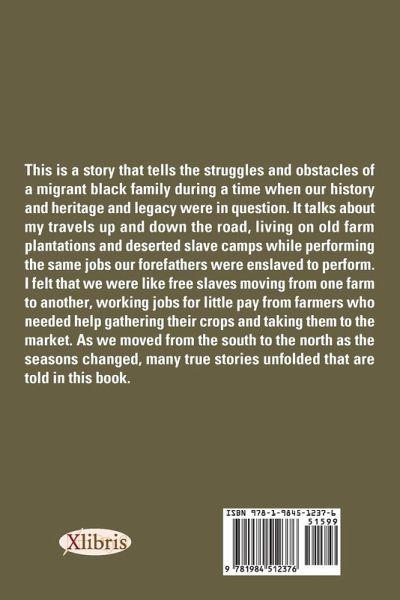 This is a story that tells the struggles and obstacles of a migrant black family during a time when our history and heritage and legacy were in question. It talks about my travels up and down the road, living on old farm plantations and deserted slave camps while performing the same jobs our forefathers were enslaved to perform. I felt that we were like free slaves moving from one farm to another, working jobs for little pay from farmers who needed help gathering their crops and taking them to the market. As we moved from the south to the north as the seasons changed, many true stories unfolded that are told in this book.
