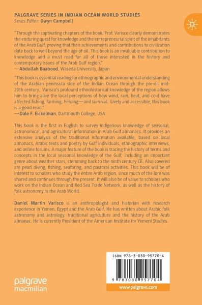 This book is the first in English to survey indigenous knowledge of seasonal, astronomical, and agricultural information in Arab Gulf almanacs. It provides an extensive analysis of the traditional information available, based on local almanacs, Arabic texts and poetry by Gulf individuals, ethnographic interviews, and online forums. A major feature of the book is tracing the history of terms and concepts in the local seasonal knowledge of the Gulf, including an important genre about weather stars, stemming back to the ninth century CE. Also covered are pearl diving, fishing, seafaring, and pastoral activities. This book will be of interest to scholars who study the entire Arab region, since much of the lore was shared and continues through the present. It will also be of value to scholars who work on the Indian Ocean and Red Sea Trade Network, as well as the history of folk astronomy in the Arab World.