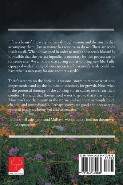 Life is a beautifully, scary journey through seasons and the storms that accompany them. Just as nature has seasons, so do we. There are seeds inside us all. What do we need in order to make those seeds bloom? Is it possible that the perfect ingredients necessary for this process are in someone else? We all know that spring comes to bring new life. Fully equipped with the ingredients necessary for nature's seeds, could we have what is necessary for one another's seeds? There's a storm on the horizon, a seasonal storm to remove what's no longer needed and lay the foundation necessary for growth. Now, what if the potential damage of the coming storm causes more fear than comfort? It's said, that flowers need water to grow, that it has to rain. Most can't see the beauty in the storm, and see them as simply loud, chaotic, and unpredictable. Perhaps storms are good and necessary, as opposed to simply being bad and destructive. In that small cafe, Jaron and MaKayla were about to find out the answer to these questions.