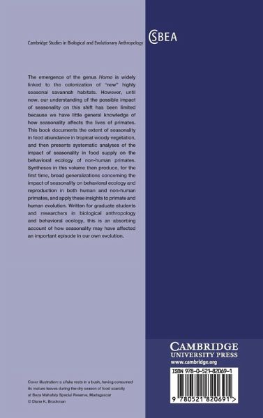 The emergence of the genus Homo is widely linked to the colonization of 'new' highly seasonal savannah habitats. However, until recently, our understanding of the possible impact of seasonality on this shift has been limited because we have little general knowledge of how seasonality affects the lives of primates. This book documents the extent of seasonality in food abundance in tropical woody vegetation, and then presents systematic analyses of the impact of seasonality in food supply on the behavioural ecology of non-human primates. Syntheses in this volume then produce broad generalizations concerning the impact of seasonality on behavioural ecology and reproduction in both human and non-human primates, and apply these insights to primate and human evolution. Written for graduate students and researchers in biological anthropology and behavioural ecology, this is an absorbing account of how seasonality may have affected an important episode in our own evolution.