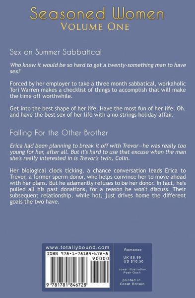 Sex on Summer Sabbatical Who knew it would be so hard to get a twenty-something man to have sex? Forced by her employer to take a three month sabbatical, workaholic Tori Warren makes a checklist of things to accomplish that will make the time off worthwhile. Get into the best shape of her life. Have the most fun of her life. Oh, and have the best sex of her life with a no-strings holiday affair. Sexy young Adam Cross comes into her life at just the right time. A physical trainer with a loving-life personality, he should work nicely in helping her meet all three goals. He'd be especially perfect for the best sex. Now if he would only just cooperate... Adam learns of her calculating plans involving him soon after beginning to date Tori. But by then he's realised he wants much more than to be the means to an end for her. If he can only hold out until the end of the summer, maybe he'll have time to convince her that the best sex comes with strings... Falling For the Other Brother Erica had been planning to break it off with Trevor-he was really too young for her, after all. But it's hard to use that excuse when the man she's really interested in is Trevor's twin, Colin. Her biological clock ticking, a chance conversation leads Erica to Trevor, a former sperm donor, who helps convince her to move ahead with her plans. But he adamantly refuses to be her donor, in fact he's pulled all his past donations, for a reason he won't discuss. Their subsequent relationship, while hot, just drives home the different goals the two have. When Colin returns from overseas, his problem with intimacy still looming large, he never dreamt he would meet his ideal partner in Erica. Only two things stand in their way-her relationship with his brother, and the fact she wants children...the one thing he can no longer provide.