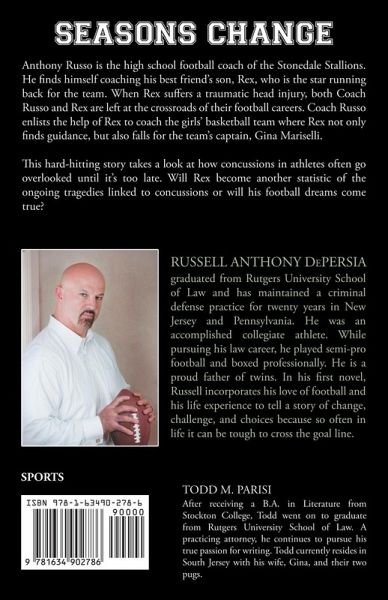 In Seasons Change, Anthony Russo is the high school football coach of the Stonedale Stallions. He coaches his best friend's son, Rex Sarcone, the star running back for the team. When Rex suffers a traumatic head injury and powers through a medically induced coma, both Coach Russo and Rex are left at the crossroads of their football careers. Coach Russo enlists the help of Rex to Coach the girls' basketball team where Rex not only finds guidance, but also falls for the team's captain, Gina Mariselli, a true love story in the making. Inspired by true events, this motivational sports novel is a heart-felt, inspirational story that explores how concussions often go overlooked until it is too late. Will Rex become another statistic of the ongoing tragedies linked to concussions or will the fighter in him make his football dreams come true? This second chance comeback sports story is perfect for young adults who are fans of football, teen romance novels, and the happy endings finally revealed at the end of the unpredictable journey of Seasons Change.