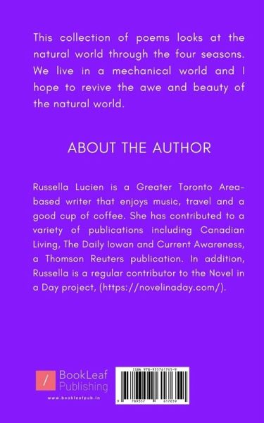 This collection of poems looks at the natural world through the four seasons. We live in a mechanical world and I hope to revive the awe and beauty of the natural world.