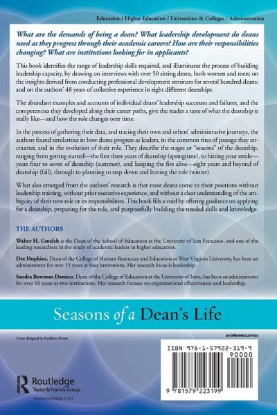 This book identifies the range of leadership skills required, and illuminates the process of building leadership capacity, by drawing on interviews with over 50 sitting deans, both women and men.