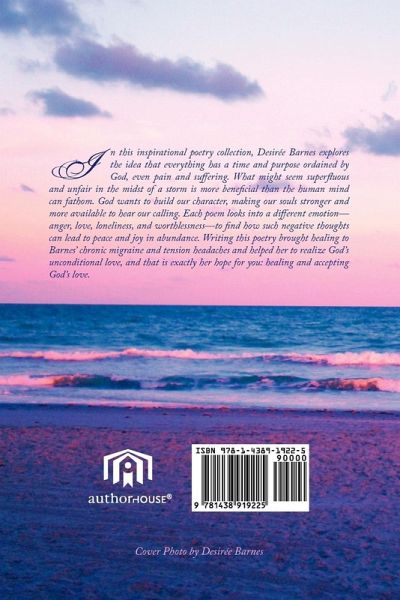 In this inspirational poetry collection, Desireé Barnes explores the idea that everything has a time and a purpose ordained by God, even pain and suffering. What might seem superfluous and unfair in the midst of a storm is more beneficial than the human mind can fathom. God wants to build our character, making our souls stronger and more available to hear our calling. Each poem looks into a different emotion-anger, love, loneliness, and worthlessness-to find how such negative thoughts can lead to peace and joy in abundance. Writing this poetry brought healing to Barnes' chronic migraine and tension headaches and helped her to realize God's unconditional love, and that is exactly her hope for you: healing and accepting God's love.