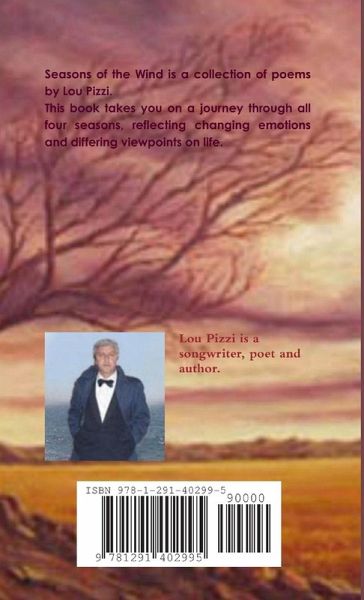 Seasons of the Wind is a collection of poems by Lou Pizzi. This book takes you on a journey through all four seasons, reflecting changing emotions and differing viewpoints on life. Also available in Italian with paperback ISBN: 978-1-291-54877-8 and eBook: 978-1-291-54887-7